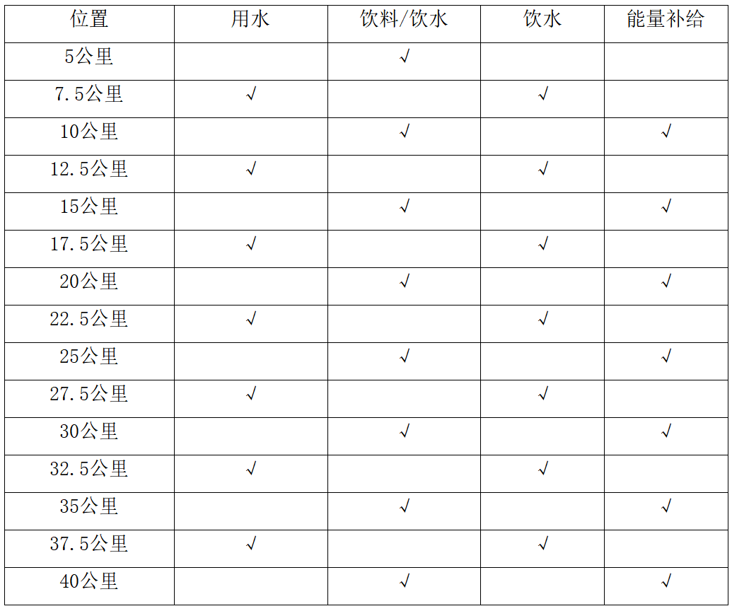 (一)在起点、沿途赛道(5公里至40公里每间隔2.5公里)及终点设置移动卫生间。